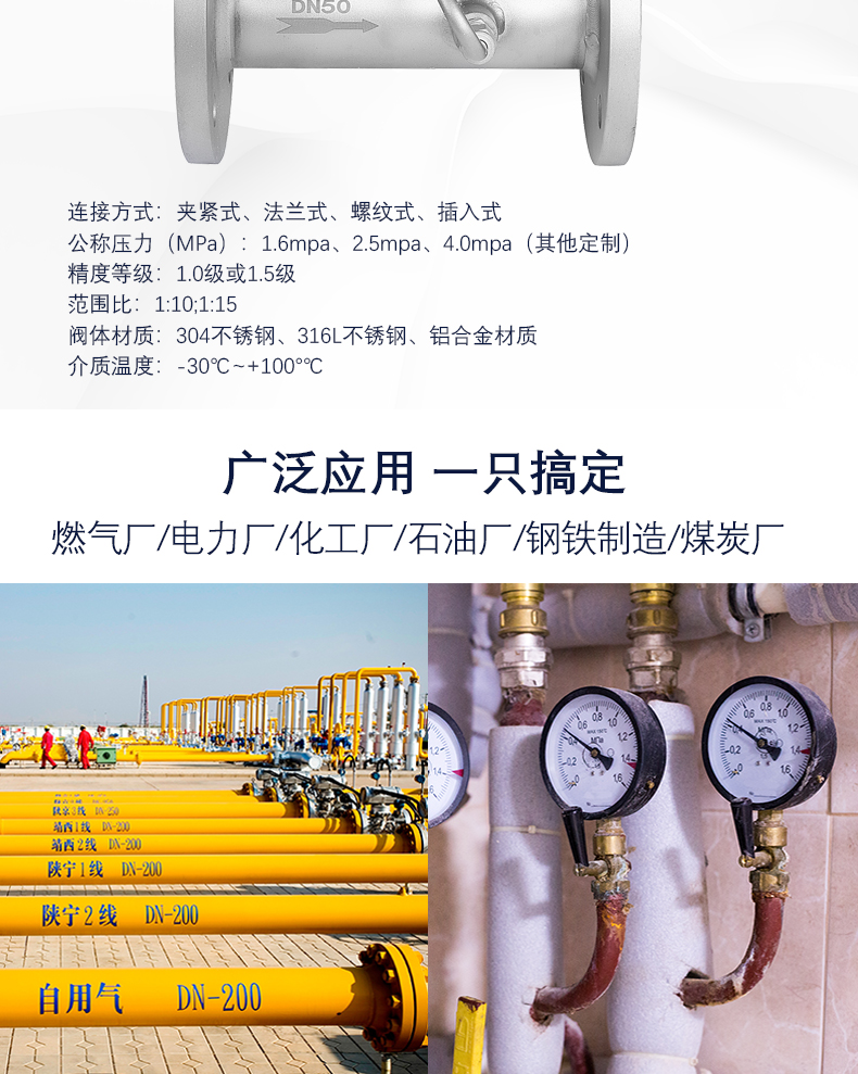 智能旋進漩渦流量計是集流量、溫度、壓力檢測功能于一體的新型氣體流量儀表,可進行溫度、壓力、壓縮因子自動補償,是石油、化工、電力、冶金等行業用于氣體計量的理想儀表。